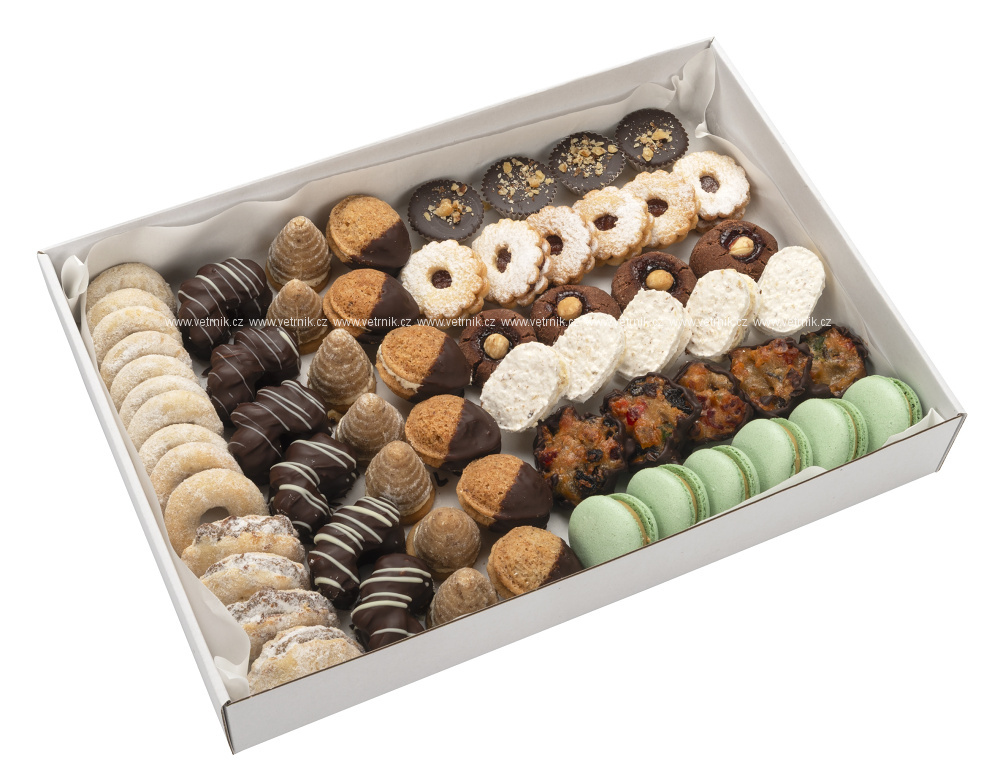 1) Ořechové úly, 2) Pistáciové makronky, 3) Krémové ořechy, 4) Pařížské rohlíčky, 5) Marokánky, 6) MINI ořechové laskonky, 7) Sádlové koláčky, 8) Mušličky ořech/mák, 9) Linecké s marmeládou, 10) Vanilkové rohlíčky, 11) Šohajky