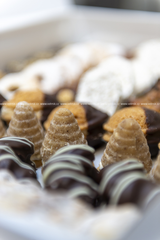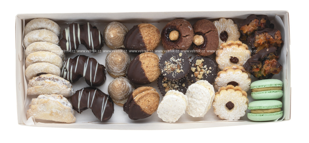 1) Ořechové úly, 2) Pistáciové makronky, 3) Krémové ořechy, 4) Pařížské rohlíčky, 5) Marokánky, 6) MINI ořechové laskonky, 7) Sádlové koláčky, 8) Mušličky ořech/mák, 9) Linecké s marmeládou, 10) Vanilkové rohlíčky, 11) Šohajky